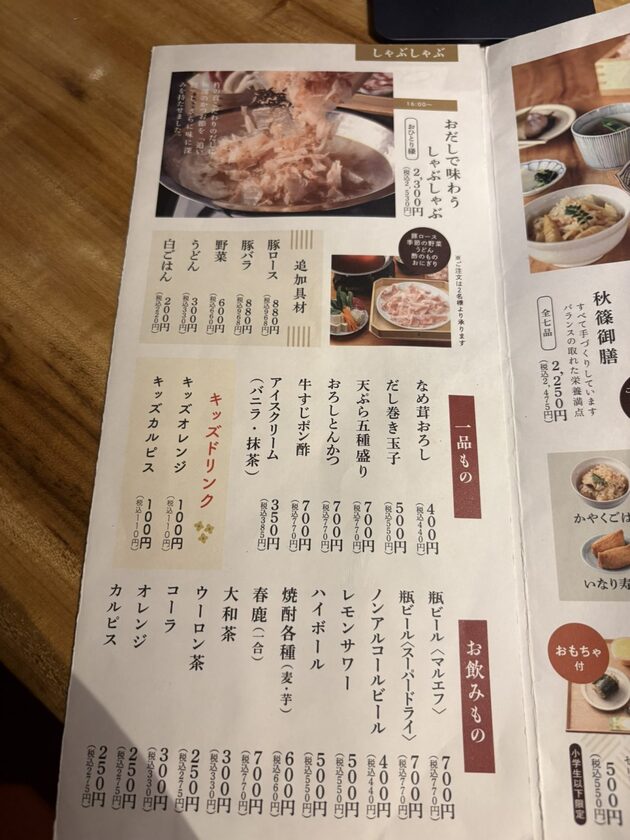 しゃぶしゃぶや一品料理もあります。
