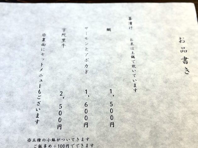 お茶漬けの種類は3種類でした。