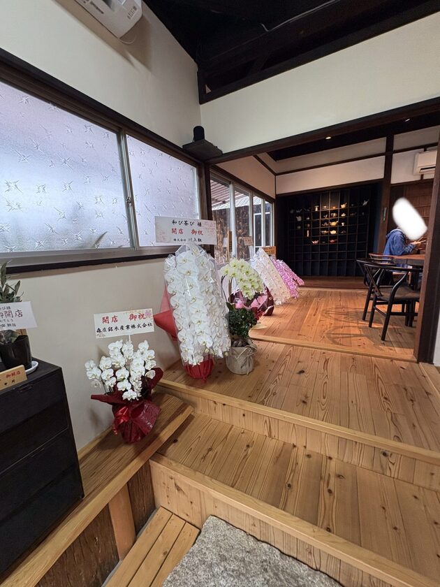 お店の入り口には、まだオープンしたてらしく、開店祝いのお花が並んでいました。