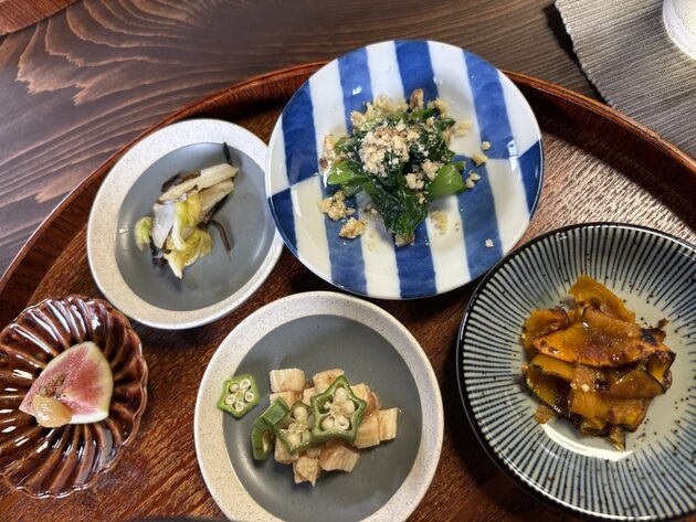 どちらも、付け合わせが5品付いています。